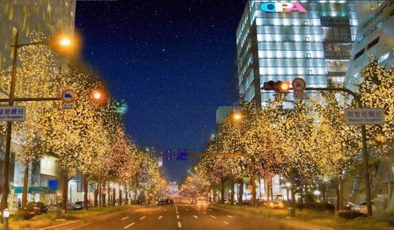 Midosuji, Osaka's symbolic street that runs from Umeda in the north to Namba in the south, will be illuminated with brilliant lights. In 2024, seven different colors will be used for each zone, brightening up Midosuji in winter. The 4-kilometer long light trail, which is a world-class scale, was certified as a world record in January 2015.